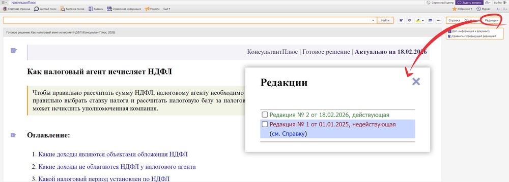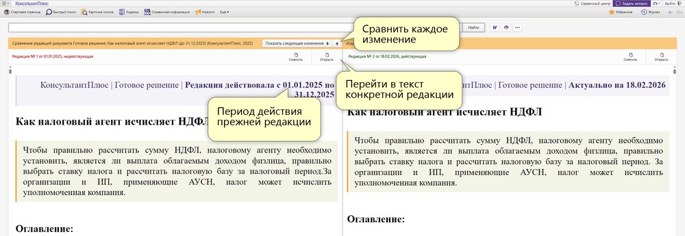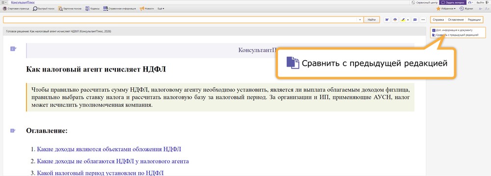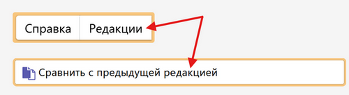 Кнопка «Сравнить с предыдущей редакцией» позволяет: