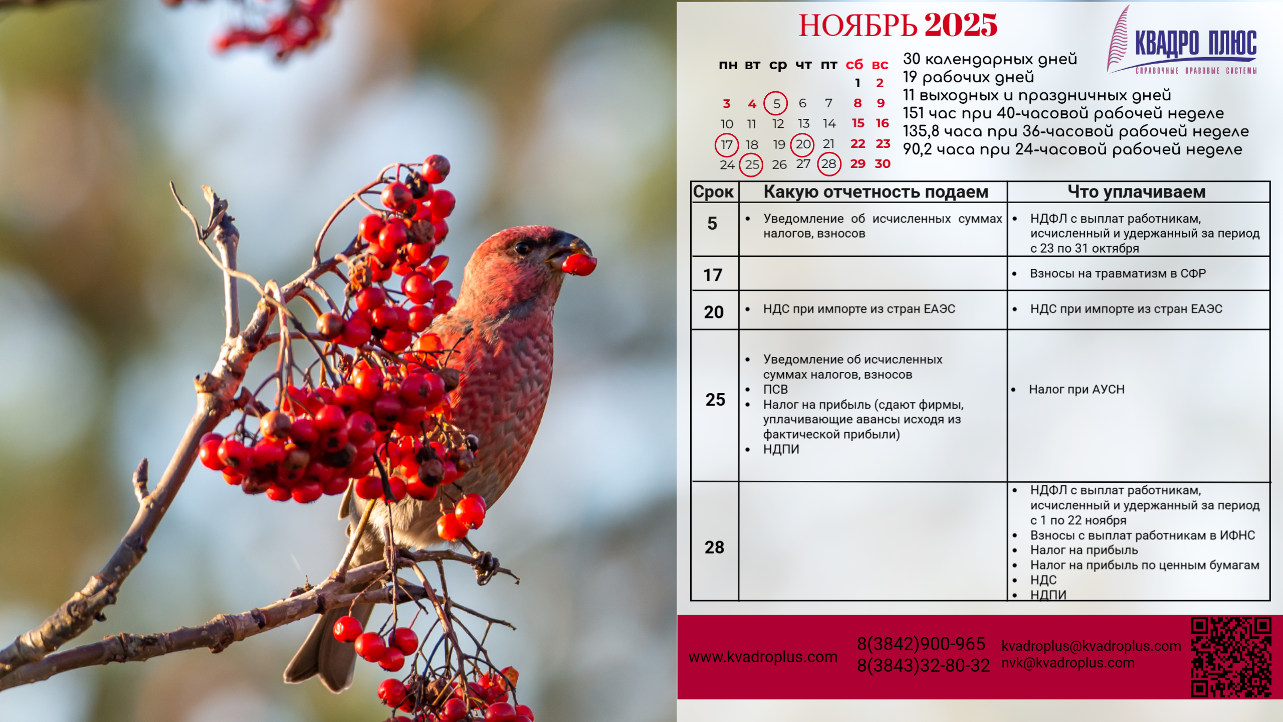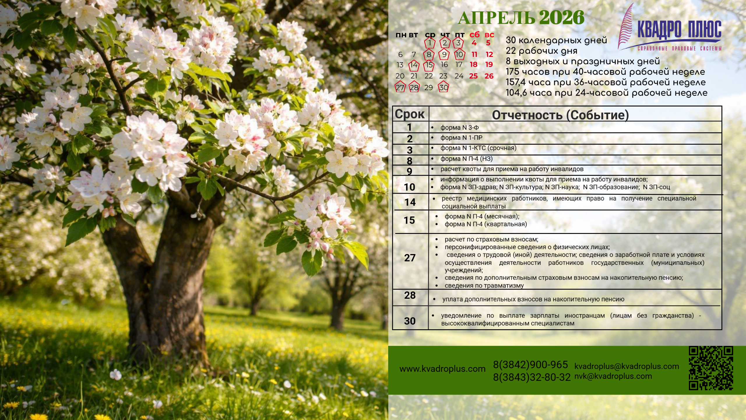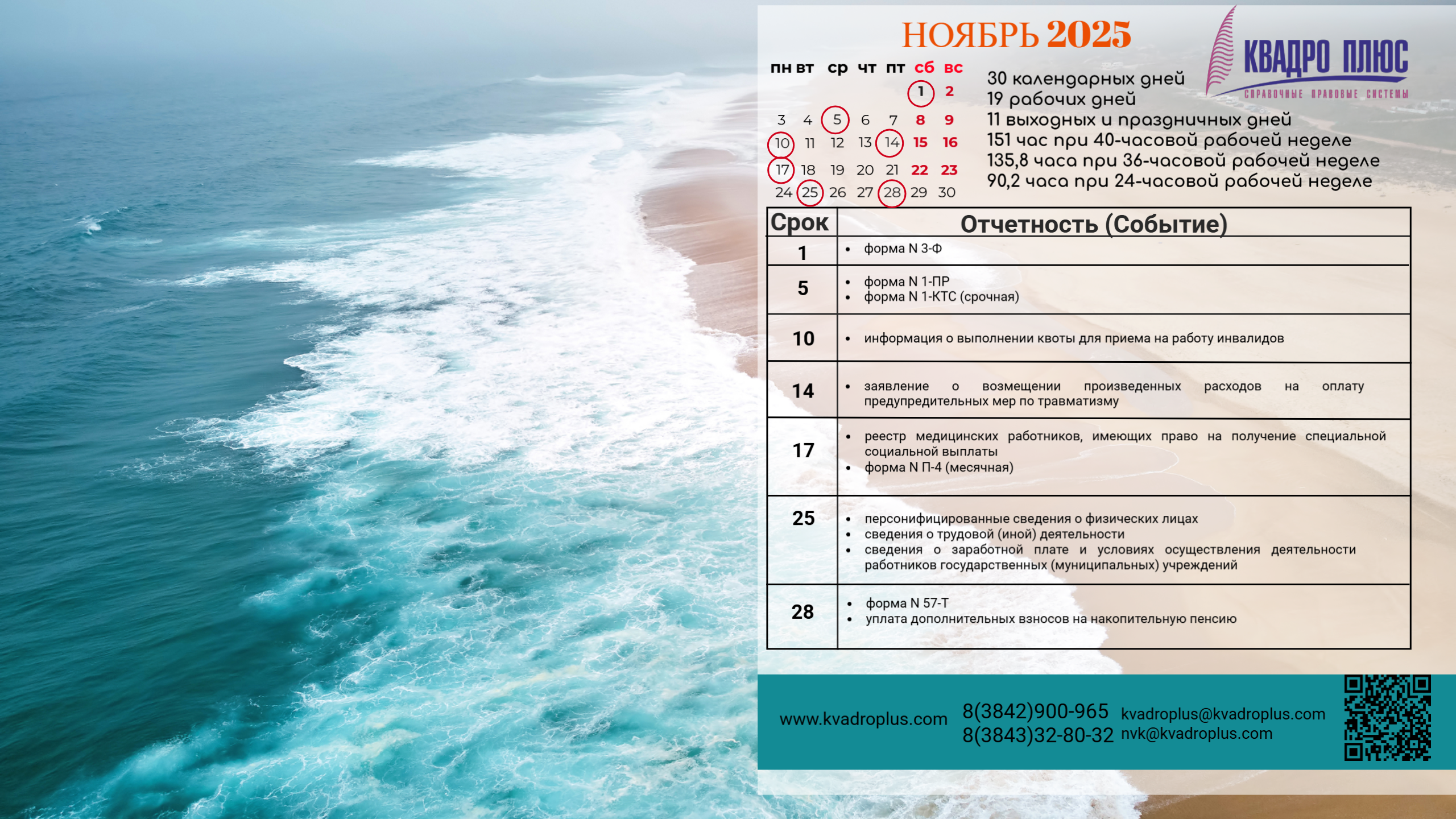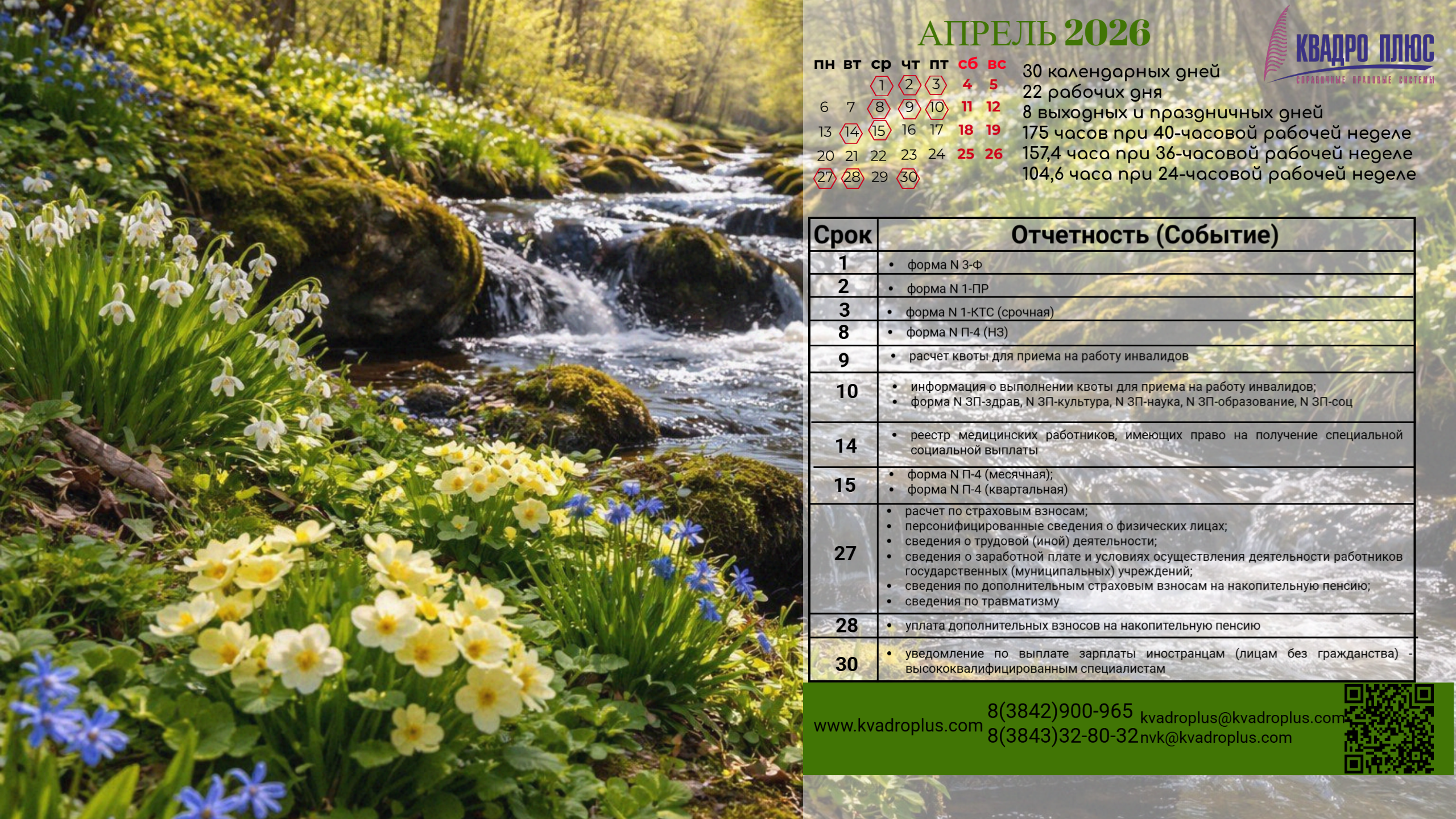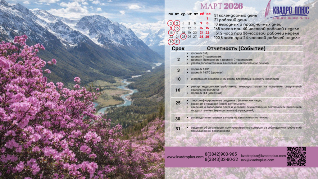 "Компания Квадро Плюс" предлагает уникальный сервис — обои для рабочего стола с календарем бухгалтера и специалиста по кадрам.