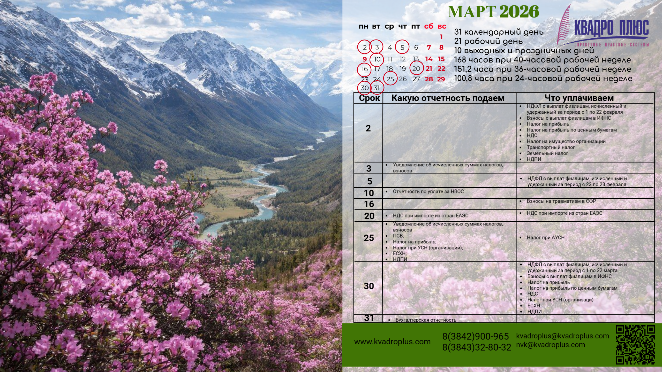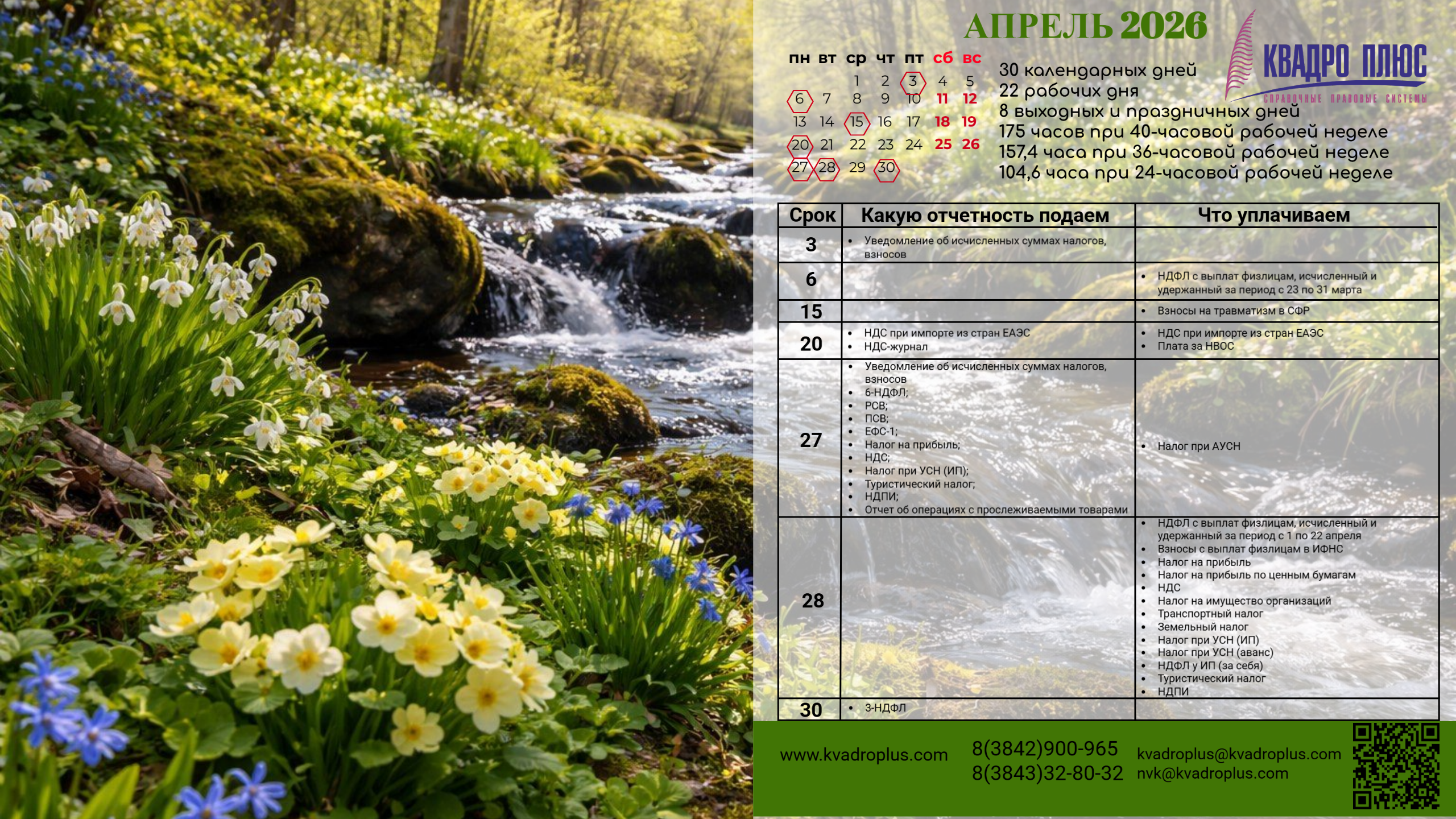Мы стремимся сделать Ваш рабочий стол не только визуально приятным и вдохновляющим, а также полезным в Вашей повседневной работе. Мы отобрали изображения и иллюстрации, которые создадут позитивное настроение, и добавили на них календарь на текущий месяц со сроками сдачи отчетности и уплаты налогов, чтобы важная информация всегда была под рукой.